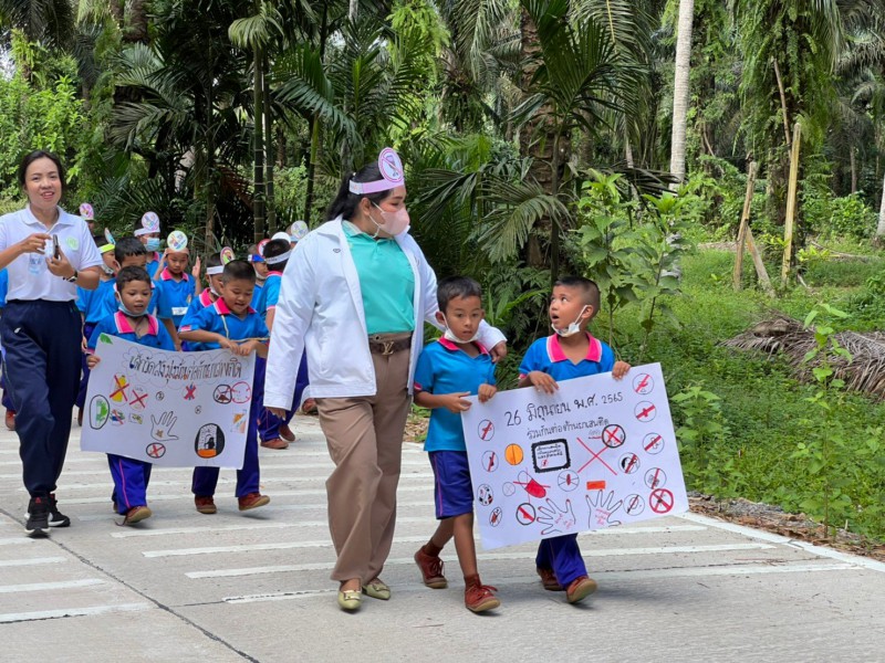 โรงเรียนวัดสังขประดิษฐ์จัดกิจกรรมเดินรณรงค์ต่อต้านยาเสพติด