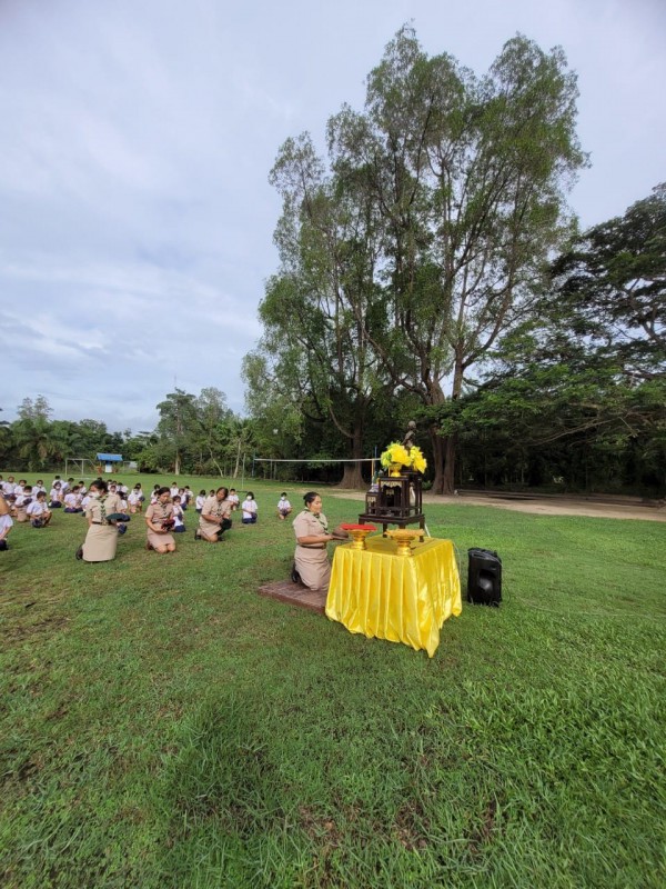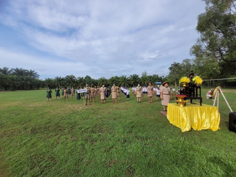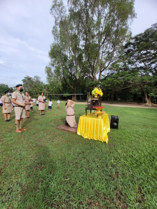 วันพฤหัสบดีที่ 24 พฤศจิกายน 2565 นางสาววิภารัตน์ อินทร์ปาน ผู้อำนายการโรงเรียน คณะครูบุคลากรทางการศึกษาและนักเรียน เข้าร่วมพิธีวางพวงมาลา เนื่องวันคล้ายวันสวรรคต ของพระบาทสมเด็จพระรามาธิบดีศรีสินทรมหาวชิราวุธ พระมงกุฎเกล้าเจ้าอยู่หัว (รัชกาลที่ 6) "วันสมเด็จพระมหาธีรราชเจ้า" ซึ่งเป็นวันสำคัญของคณะลูกเสือแห่งชาติ บรรดาลูกเสือ-เนตรนารี บุคลากรทางลูกเสือ และพสกนิกรชาวไทยทั้งปวง |