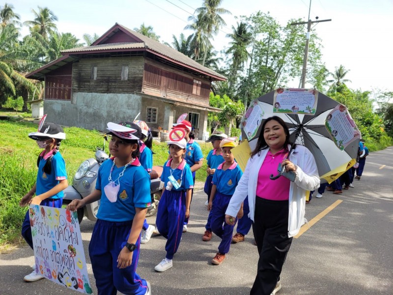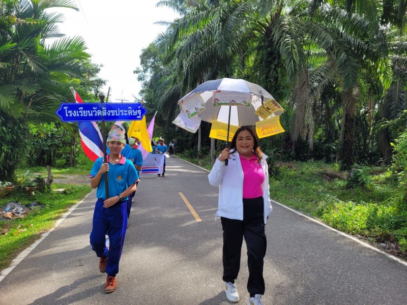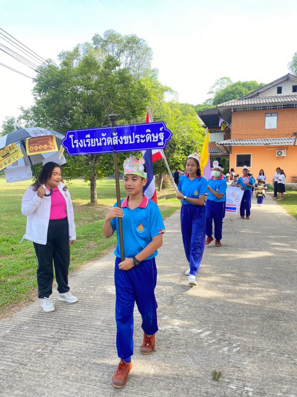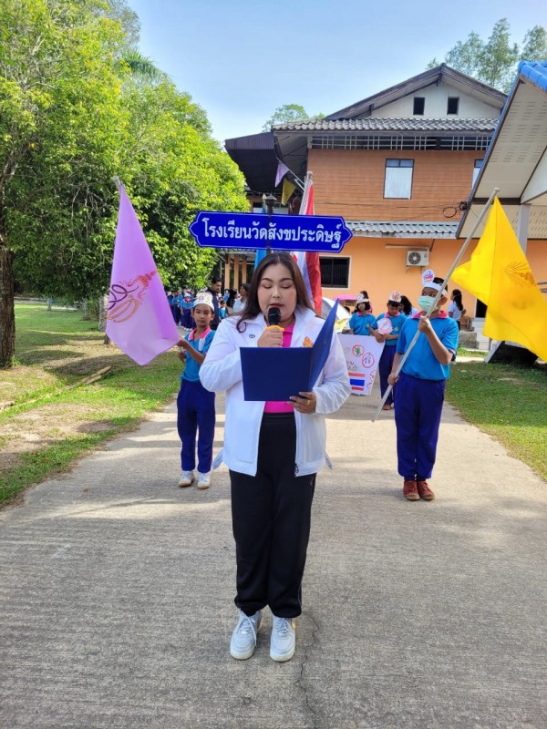 วันที่ 26 มิถุนายน 2566 นางสาววิภารัตน์ อินทร์ปาน ผู้อำนวยการโรงเรียนวัดสังขประดิษฐ์ พร้อมด้วยคณะครู จัดกิจกรรมเดินรณรงค์ต่อต้านยาเสพติด “รวมพลังไทย หยุดภัยยาเสพติด” ณ โรงเรียนวัดสังขประดิษฐ์ คันธุลี จังหวัดสุราษฎร์ธานี
