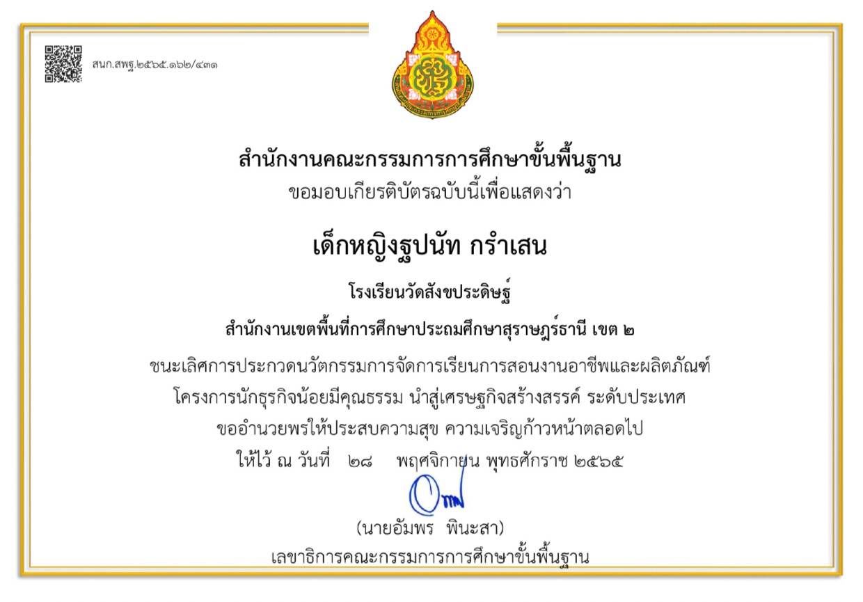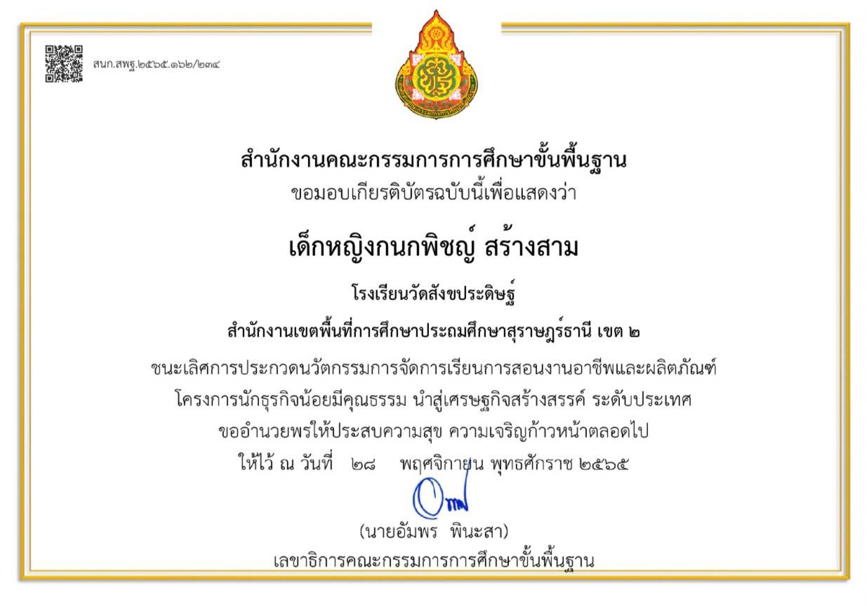 ชนะเลิศ..การประกวดนวัตกรรมการจัดการเรียนการสอนงานอาชีพและผลิตภัณฑ์