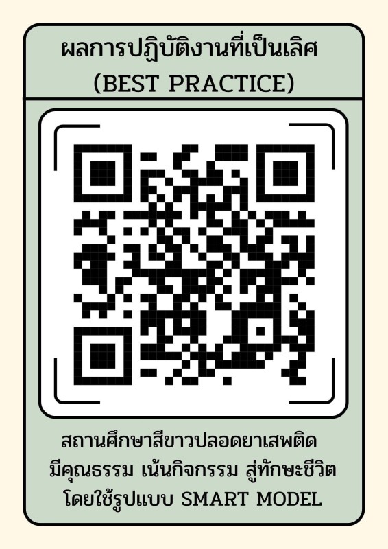 ผลการปฏิบัติงานที่เป็นเลิศ (Best Practice) "สถานศึกษาปลอดยาเสพติด มีคุณธรรม เน้นกิจกรรม สู่ทักษะชีวิต โดยใช้รูปแบบ SMART Model" ปีการศึกษา 2568